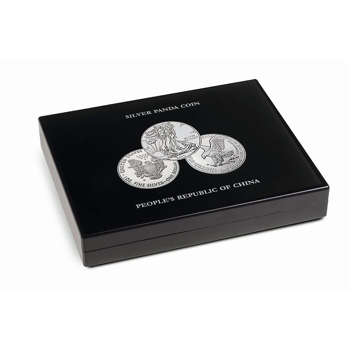 Since 1986 the United States Mint has released 1 oz. American Eagle silver dollar coins in bullion and various commemorative versions. With their iconic “Walking Liberty” design they are widely considered one of the most beautiful collectible coins in the world. Elegant presentation case for 1 oz. American Eagle silver