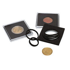 collections around the world for many years. Collectors appreciate being able to store their coins easily and presenting them in an aesthetically pleasing manner. Leuchtturm has now developed a clever innovation that will make life easier for all avid coin collectors in dealing with capsules: the QUADRUM capsule comprises rings in different sizes, meaning that the capsule is easy to adjust to house coins with diameters of between 16 and 41 millimetres. Consequently, collectors no longer need to buy QUADRUM capsules in varying diameters. The coins have been chosen for coin diameters most commonly used. The widely popular QUADRUM system ensures maximum flexibility as well as proven quality and security for all collectors.