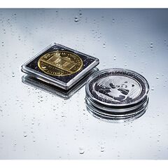 The foam ring inside the capsules with a thickness of 3 mm is based on the patented Intercept technology, which is proven for more than 30 years. The copper particles in the material bind corrosive gases permanently and as a result neutralise harmful atmospheric substances inside the capsule. This protects the coins from tarnishing. Guaranteed protection up to 15 years*! The effect was verified by the reliable norms DIN, EN, ISO and ASTM amongst others. Available for all coins with a diameter from 26 to 41 mm (in millimeter steps).