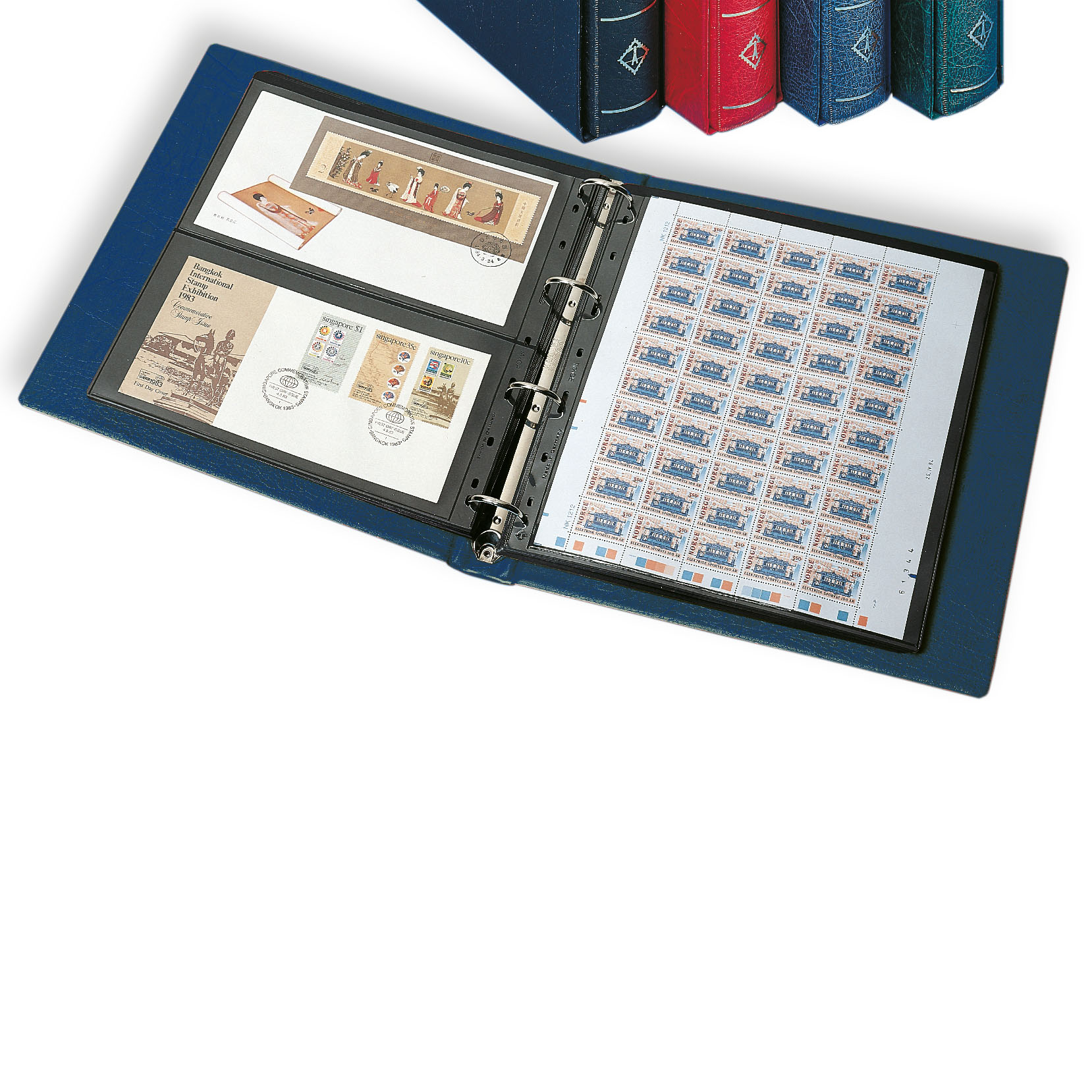 Wattierter Royal-Binder inkl. Schutzkassette, Füllmenge: 25 bis 35 Hüllen (abhängig von der Stärke der Belege), 2 Blattwender, Außenformat Binder: 300 x 310 mm, Außenformat Kassette: 310 x 320 x 60mm.