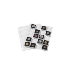 Push in – done! SNAP plastic sheets for storing 20 QUADRUM coin capsules. Made of clear polyester which retains its shape well. Small protrusions on the edge of the squares hold the capsules securely in place. Suitable for all GRANDE binders and all standard four-ring office binders. Pack of 2. Overall size: 238 x 286 mm (9 3/8 x 11 1/4").
