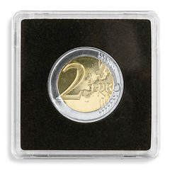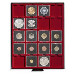 Square capsules made of high-quality, non-scratchy acrylic. Firm, yet easy-to-open fastening. Capsules incl. black insert fitting for all common coins with a diameter of 26 mm.