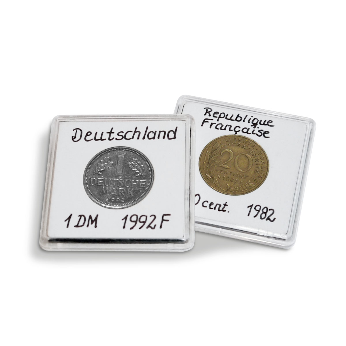 The white surface of the insert makes it possible to note information such as the year of issue and country of origin of the coin. Available for all coins from 14 to 41 mm (1/2 x 1 1/3") in diameter (in 1-millimetre intervals).