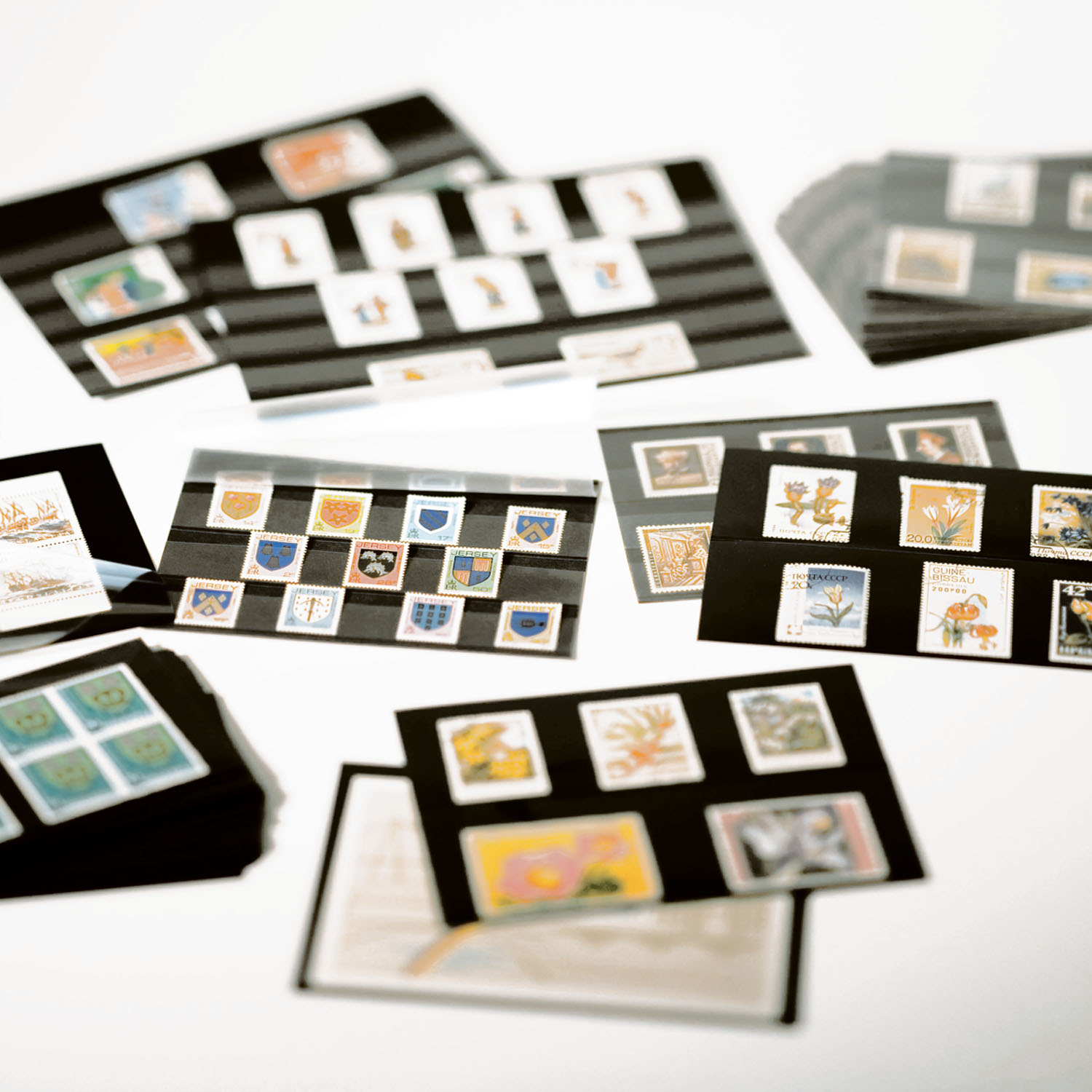 Standard cards PVC 210x148 mm,5 clear strips with cover sheet black card, 50 per pack