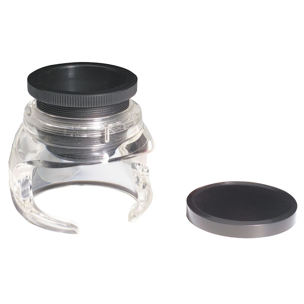 Lens diameter 33 mm, overall diameter 65 mm, height 60mm, 5,00 dioptre, spherical, acrylic lens