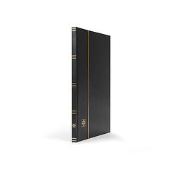 BASIC stockbook A4 with 16 black sheets and un-padded cover. Incl. 9 clear strips per page, interleaves and double hinge binding.