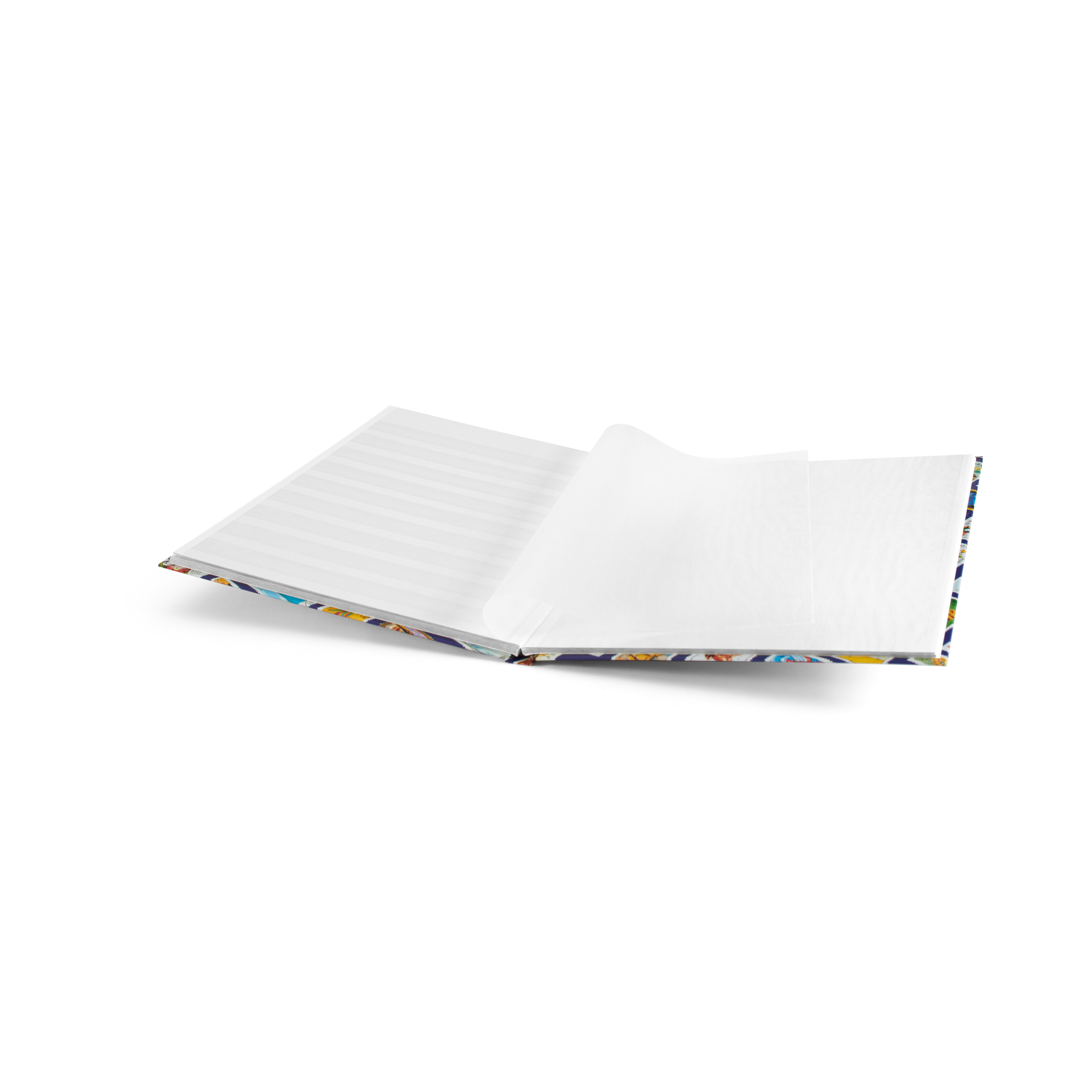 Stock book A4* with 16 white pages, non-padded cover and stamps motif. Single interleaving, 9 glassine strips per page and rigid binding.