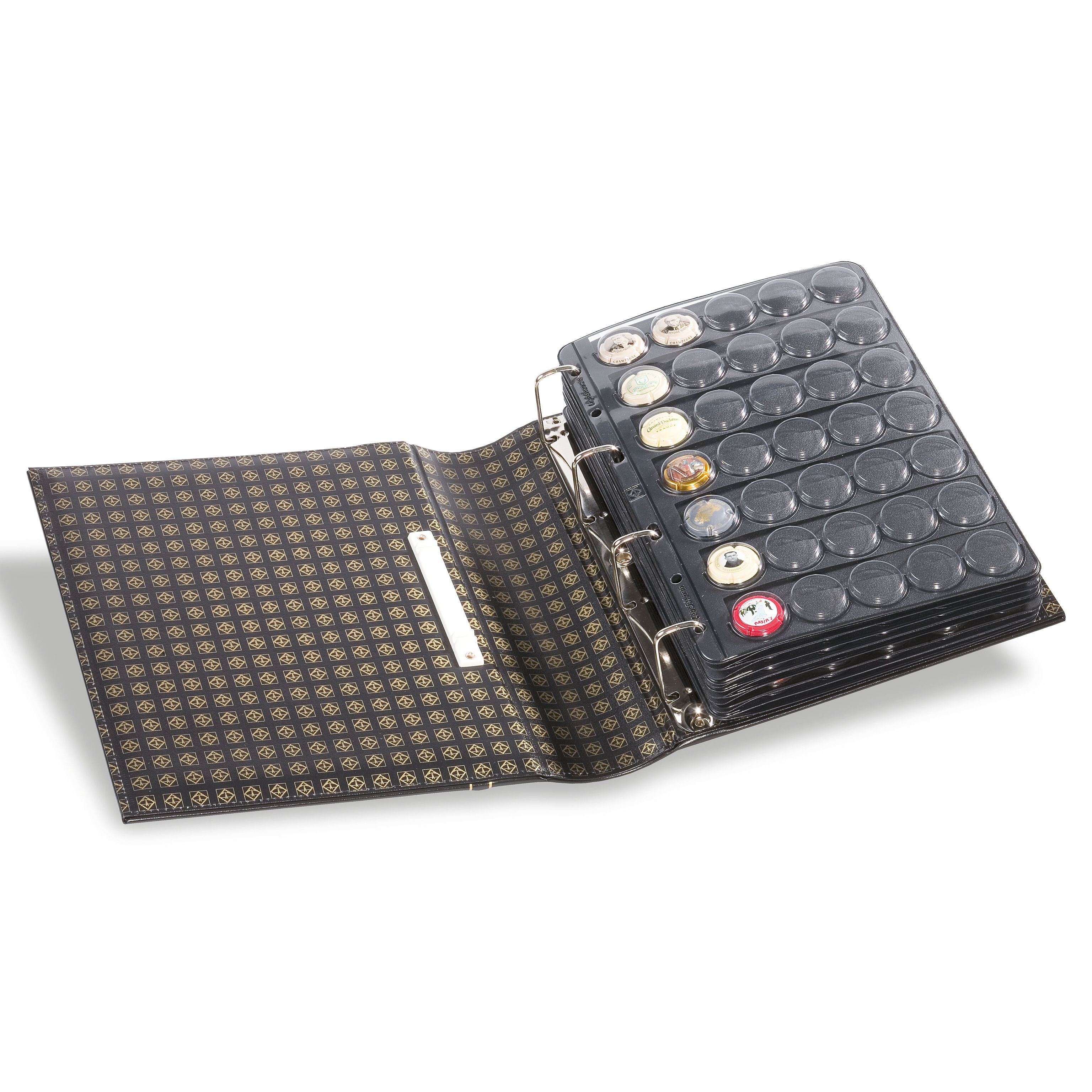 Bookbinder's quality, stylish leatherette cover. Striking imprint on spine and cover. 4 D-ring mechanism.