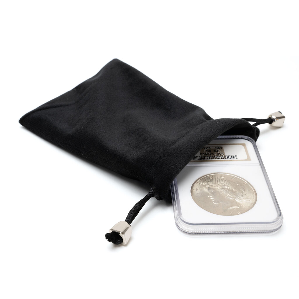 Would you like to enhance the magic and fascination of precious metals by presenting them in elaborate packaging? Do you wish to keep your gift a surprise until it has been opened? Then the coin pouch is just the thing you have been looking for. Available in two different sizes and colours, there is one for every taste and size of coin. The coin pouch is made from elegant and durable velvet, featuring a cord fastening for opening and closing the pouch. This practical coin pouch is ideal for your visits to a coin fair or for presentation on a special occasion. It also makes sense for reasons of sustainability since it can be used permanently for storing coins, long after it has served its purpose as gift packaging.