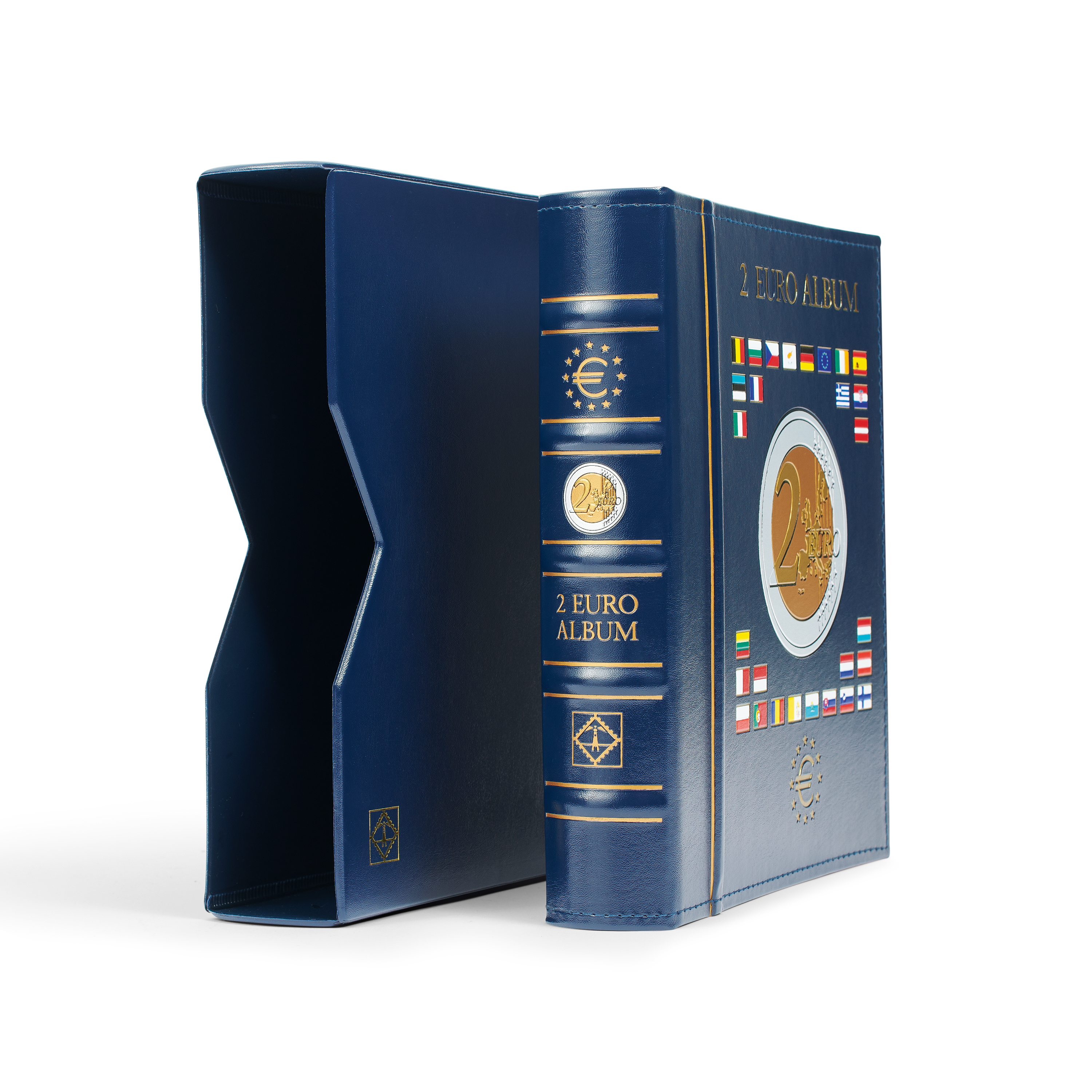 Album for convenient storage of 2-euro coins. The premium leatherette cover embossed on spine and cover ensures a remarkably attractive presentation.