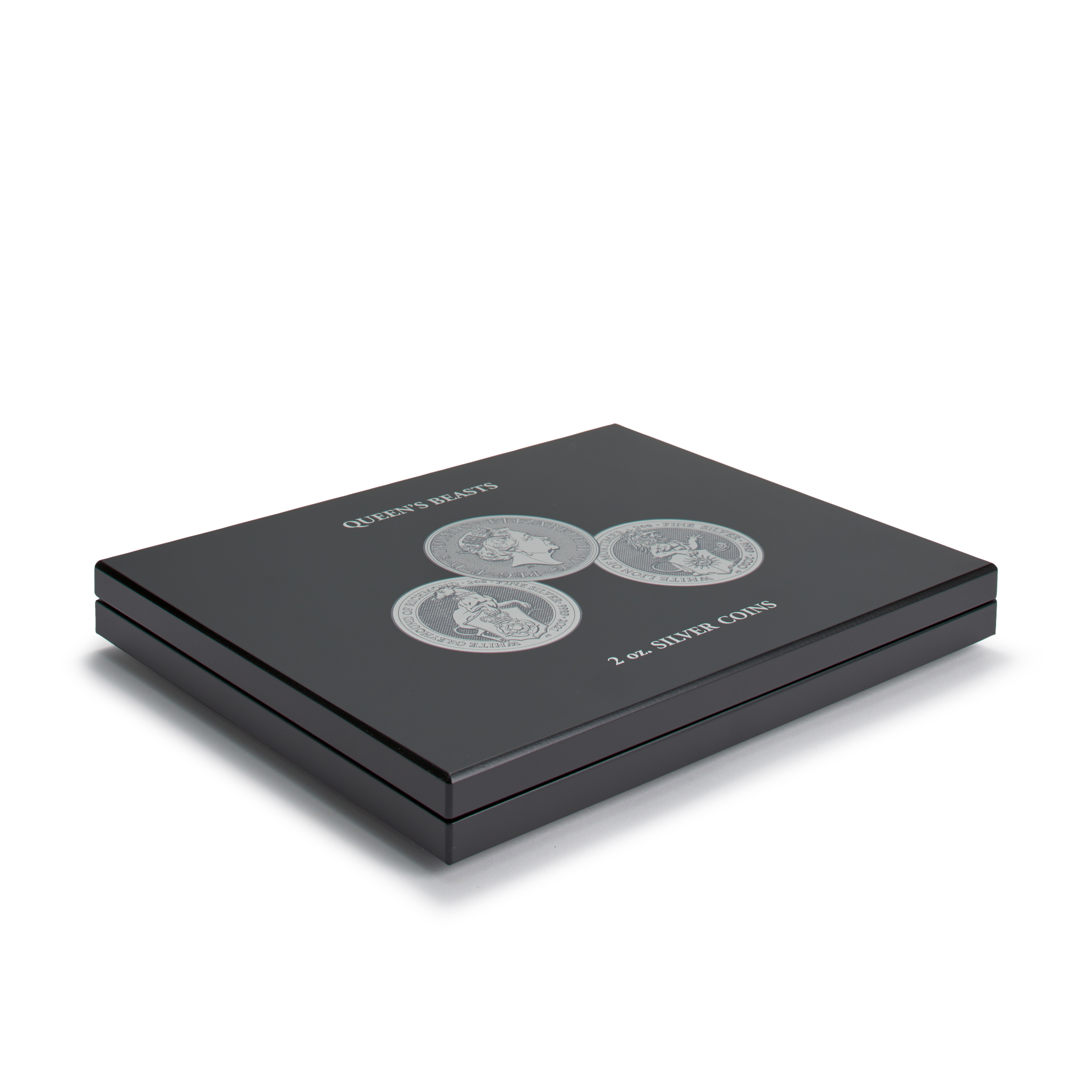 High-quality black coin case to store 11 Queen’s Beast silver coins (2 oz.).